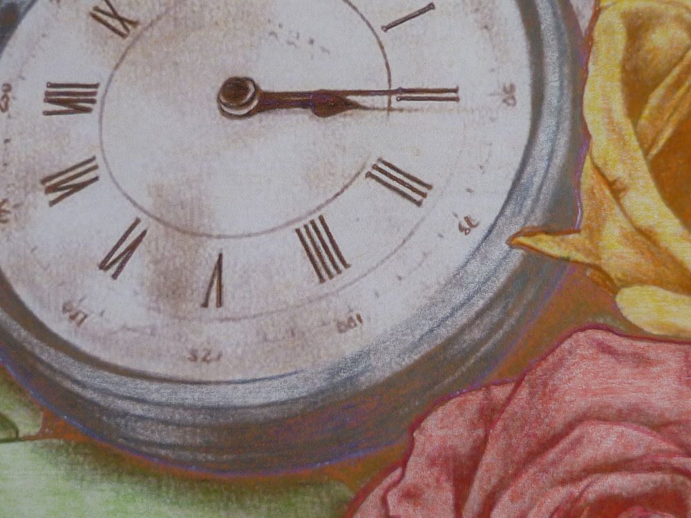 Buy this illustration time with roses by Edith Boogaard van den on canvas, ArtFrame, poster and wallpaper, printed on demand in high quality.