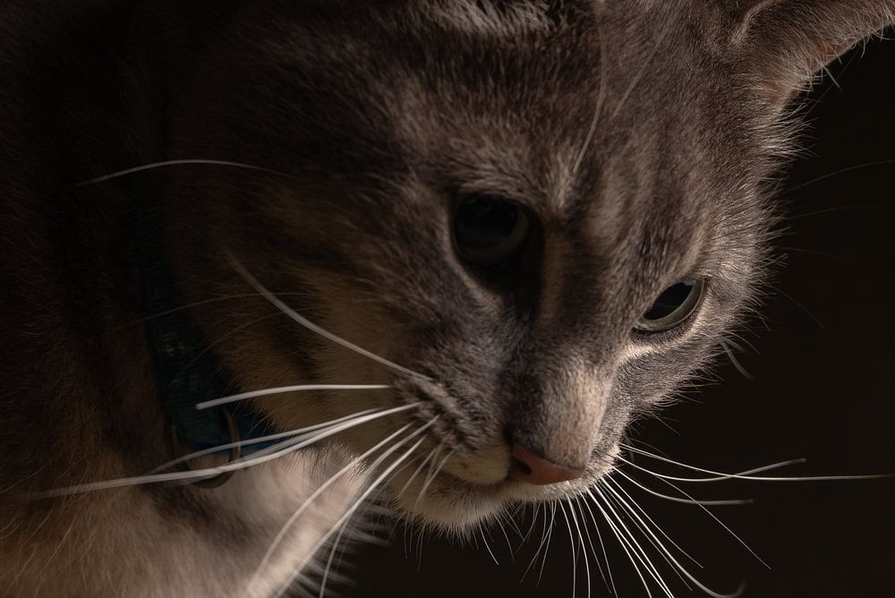 An adorable tomcat sits on a beautiful vintage chair, enveloped in a warm glow of soft light streaming through the lamp into the room. His fur is velvety and grey in colour, with a few streaks of a deep black here and there that accentuate his elegant silhouette. His eyes, bright as emeralds, glisten curiously as he explores the world around him.
