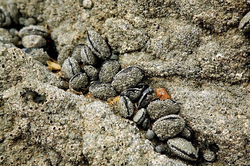 Door het grote verschil in eb en vloed van de zee in Noord-Bretagne zet zich voortdurend zout en zand af op de oude lavarotsen. Wanneer zich dan mosselen genesteld hebben worden die mee versteend.