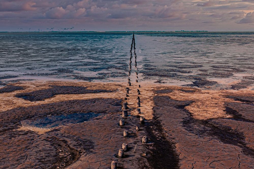 On 19 April 2025 , before joining an excursion to engelsmansplaat , we first visited Wierum. Here you have a beautiful stretch of mudflats with lovely structures. We were lucky that it was just low tide.