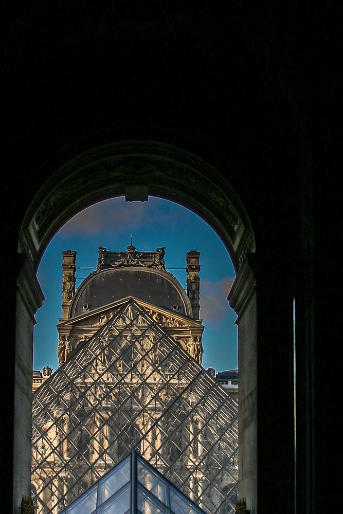 view through the glass pyramid of the louvre in paris by Eric van Nieuwland
