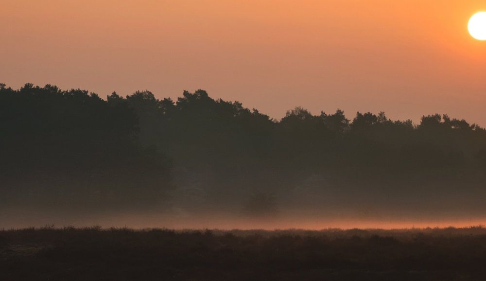 A misty spring morning on the heath in Huizen. The fog still remained when the sun was well and truly up, which is quite unique.