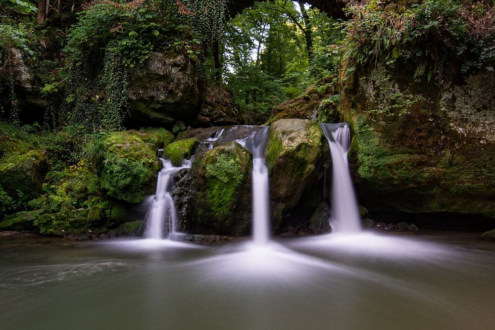 a beautiful waterfall in mullerthal in luxembourg .you pass it via the marked hiking trails and definitely recommended in the early morning when there is little tourism.
