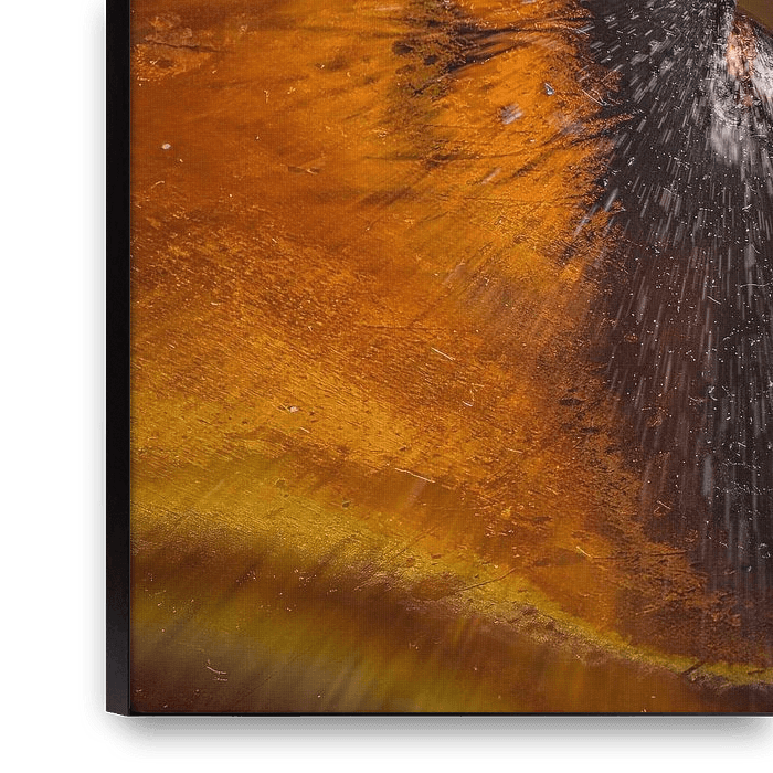 Abstract photo with a harmony in colour distribution and perfectly suited and shown to its best advantage on brushed aluminium. Fits well with a modern, industrial interior design