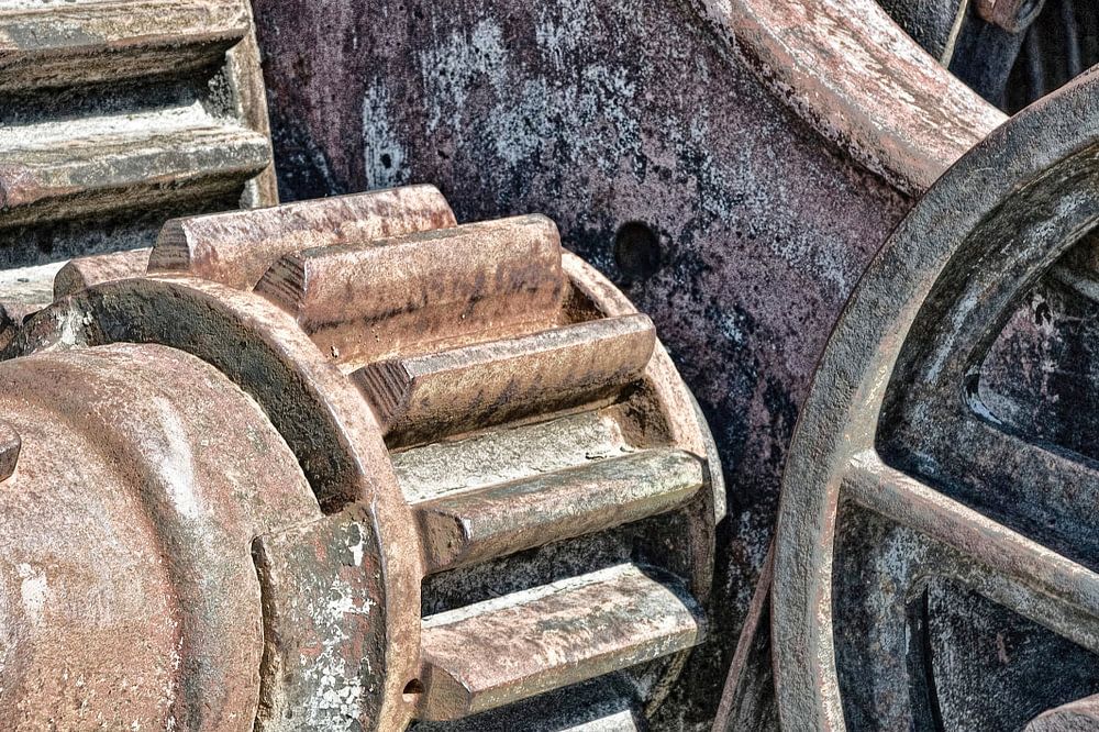 interlocking gears from an old machine, this machine I photographed in the harbour of Trondheim.