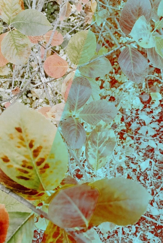 Leaves whispering in the wind, caught in a play of colours and layers. Whispers of Leaves is a print that makes nature dance in shades of green, red and blue, with a touch of abstraction. It reminds us that even the smallest detail - a leaf, a grain, a transition of colour - can be a source of tranquillity.