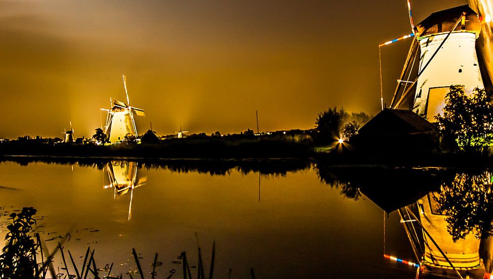 Illuminating against the dark background, the mills are transformed into a beautiful golden appearance. The mills shine in all their splendor as if time has no hold over them. They have been in service since the 18th century and are now protected by UNESCO. Which is completely justified.