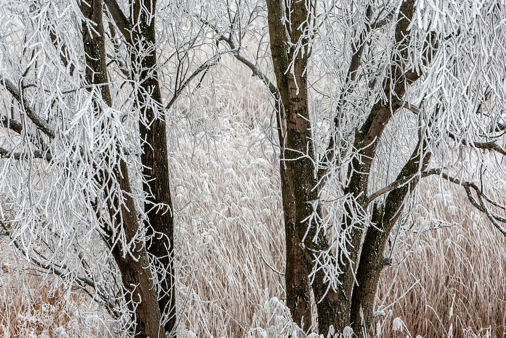 Winter in the Alblasserwaard. The frozen fog on the branches of this tree creates a winter atmosphere in this photo.