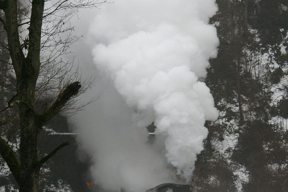 Een P8 vol onder stoom op een koude decemberdag op de Lingne du Bocq (Belgie) in 2010.