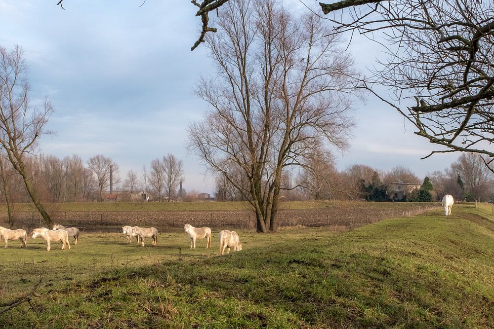 Buy this landscape artwork witte paarden bij dijk by Moetwil en van Dijk - Fotografie on canvas, ArtFrame, poster and wallpaper, printed on demand in high quality.