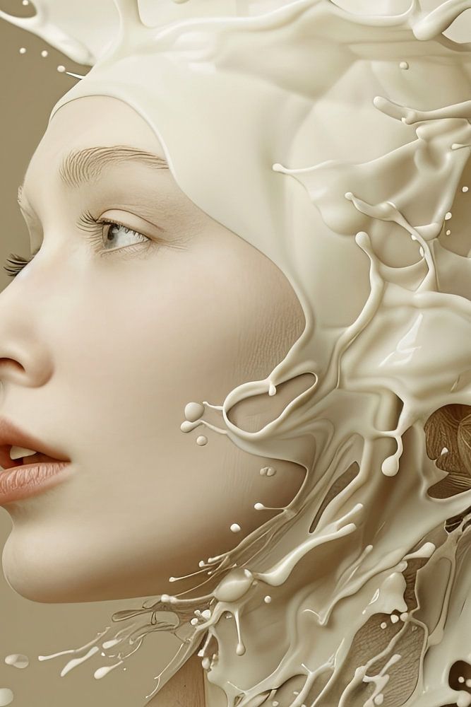 Buy this portrait woman with dynamic milk hairdo by Egon Zitter on canvas, ArtFrame, poster and wallpaper, printed on demand in high quality.
