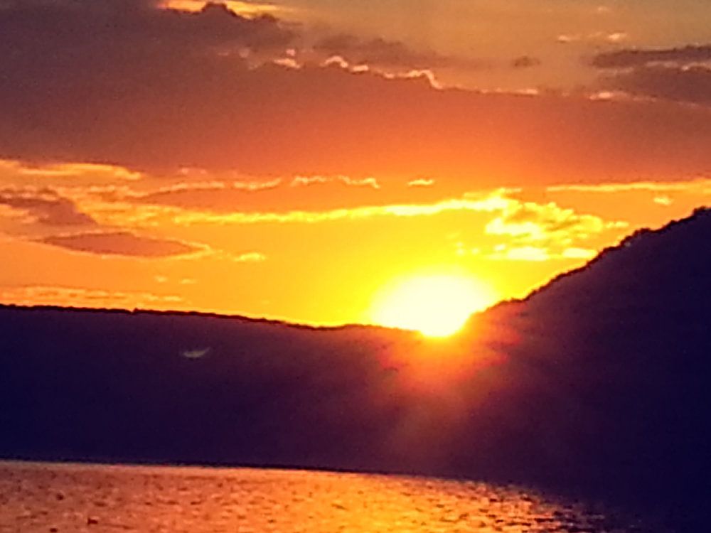 Een rustige foto met een warme tint er aan (zonsondergang)