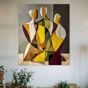 Curvy Ladies Wine | Gold Black/White by Vrolijk Schilderij