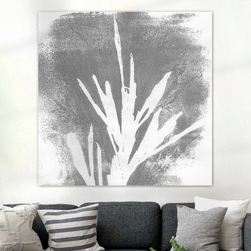 Modern botanical minimalist art. Abstract plant in grey and white by Dina Dankers