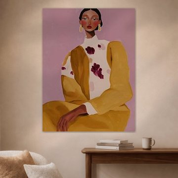 Portrait-style artworks with faces draw the eye naturally, so placement matters. Hang them at eye level in spaces where you pause - hallways, above a console table, or opposite seating areas. The expressive portrait and floral details in Black & white with flower colour splash create a focal point that invites a closer look when positioned at around 145 - 150 cm from the floor.