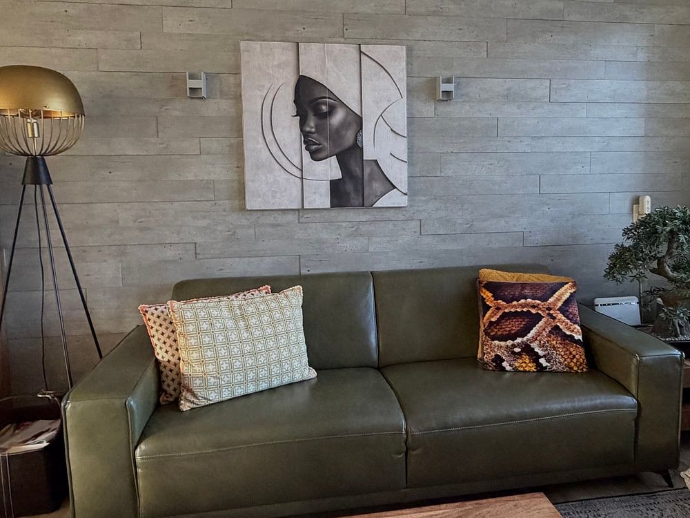 African art brings warmth, strength and rich cultural beauty into your home. The portraits and landscapes in this collection celebrate the diversity of the continent - from powerful wildlife to intimate portraits that honor resilience and grace. Earthy tones like bronze, terracotta and sage green create calm, grounded interiors, while gold accents add depth. A piece like Modern abstract portrait with gold accents works beautifully in modern or eclectic spaces.