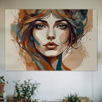 The warm brown, beige, bronze, and gold tones in Art Nouveau artwork pair beautifully with classic interiors that feature dark wood furniture, velvet upholstery, and brass accents. For a bohemian style, combine these earthy metallics with jewel-toned cushions, rattan pieces, and layered textiles. The taupe shades work as a neutral bridge in both styles, grounding bolder colors while highlighting the decorative flourishes typical of this artistic movement.