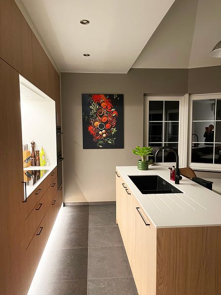 Organic subjects work beautifully alongside natural materials in your room. Consider placing botanical artwork near wooden furniture, woven baskets, or linen textiles to create a cohesive look. The textures and tones in Still life in green pair well with rustic wood or ceramic accessories.