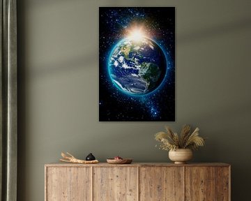 Astronaut on the moon with a view of planets by Poster Art Shop