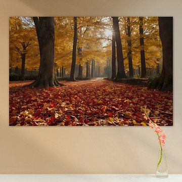 The warm colours, the changing nature and the cosy evenings. Buy an autumn landscape painting to always be reminded of those beautiful months. Go for an abstract autumn art print or, on the contrary, go for a colourful photo wallpaper of an autumn forest. The autumn artworks can also be printed on acrylic glass, canvas and more. Enjoy the earthy colours, the orange, purple and red leaves. You'll see it all in our autumn wall art collection.