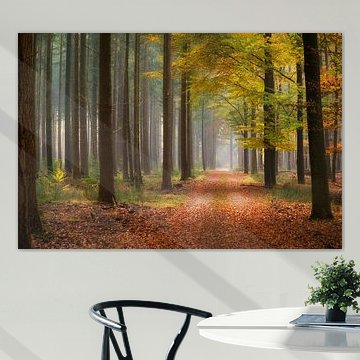 The warm colours, the changing nature and the cosy evenings. Buy an autumn landscape painting to always be reminded of those beautiful months. Go for an abstract autumn art print or, on the contrary, go for a colourful photo wallpaper of an autumn forest. The autumn artworks can also be printed on acrylic glass, canvas and more. Enjoy the earthy colours, the orange, purple and red leaves. You'll see it all in our autumn wall art collection.