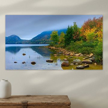 The warm colours, the changing nature and the cosy evenings. Buy an autumn landscape painting to always be reminded of those beautiful months. Go for an abstract autumn art print or, on the contrary, go for a colourful photo wallpaper of an autumn forest. The autumn artworks can also be printed on acrylic glass, canvas and more. Enjoy the earthy colours, the orange, purple and red leaves. You'll see it all in our autumn wall art collection.