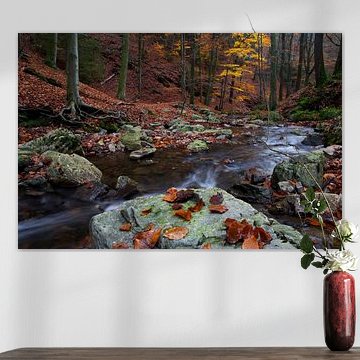 The warm colours, the changing nature and the cosy evenings. Buy an autumn landscape painting to always be reminded of those beautiful months. Go for an abstract autumn art print or, on the contrary, go for a colourful photo wallpaper of an autumn forest. The autumn artworks can also be printed on acrylic glass, canvas and more. Enjoy the earthy colours, the orange, purple and red leaves. You'll see it all in our autumn wall art collection.