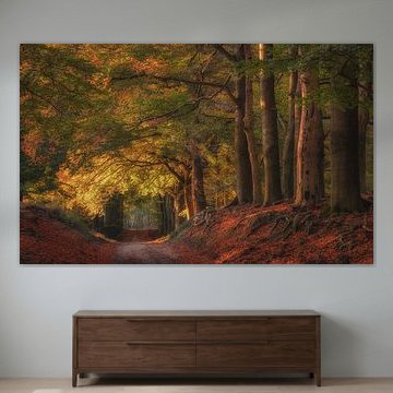 The warm colours, the changing nature and the cosy evenings. Buy an autumn landscape painting to always be reminded of those beautiful months. Go for an abstract autumn art print or, on the contrary, go for a colourful photo wallpaper of an autumn forest. The autumn artworks can also be printed on acrylic glass, canvas and more. Enjoy the earthy colours, the orange, purple and red leaves. You'll see it all in our autumn wall art collection.