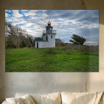 Lighthouse by the sea and rays of sunshine by Martin Köbsch