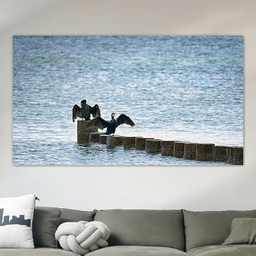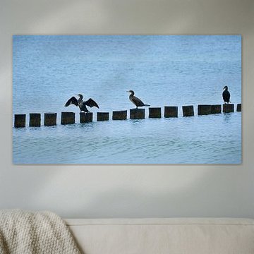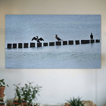 Cormorants on a groyne on the Baltic Sea. by Martin Köbsch