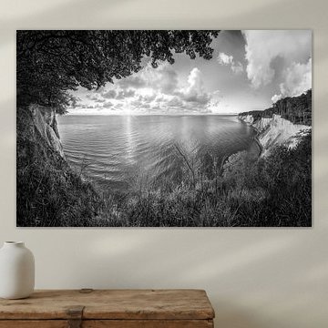 Chalk cliffs at sunrise on the island of Rügen in black and white by Manfred Voss, Black-White Photography