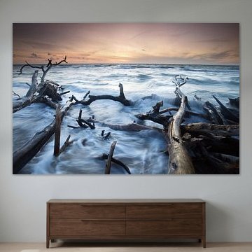 Groynes at sunset on the coast of the Baltic Sea near Graal Müritz by Rico Ködder