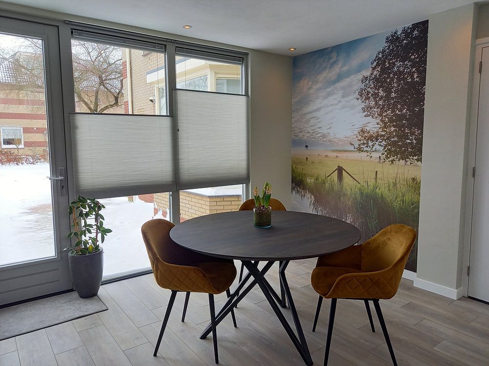 The calm and delicate character of the Betuwe collection makes it a good spot for your bedroom. These artworks bring a gentle, mysterious atmosphere that encourages relaxation at the end of the day. Try hanging a Betuwe piece above your bed or on the wall opposite your nightstand to create a peaceful focal point. The soft tones work well with natural textiles like linen bedding and wooden furniture.