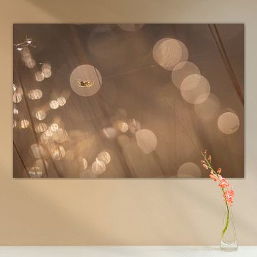 Bokeh's dreamy, delicate mood pairs beautifully with soft interior elements that enhance its calm atmosphere. Combine your bokeh print with light linen curtains, pale cushions in complementary taupe or mauve, and natural accessories like ceramic vases or wooden candleholders. The soft-focus aesthetic works particularly well above a sideboard styled with gentle lighting or near plants with rounded leaves that echo the circular bokeh shapes. Create a serene gallery wall by mixing portrait, square, and landscape formats for a layered, peaceful display that invites relaxation.