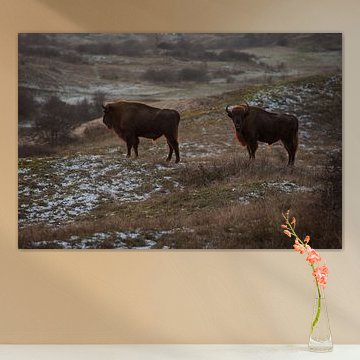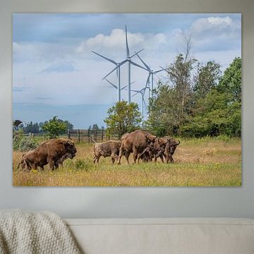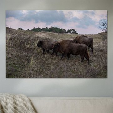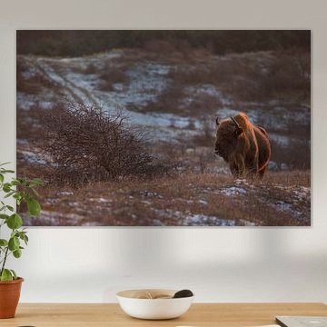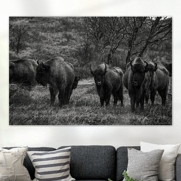 Bison, large and powerful animals of North America, most currently living in natural reserves. Do you have an interest in these creatures and want wall art of them? Our artists have made many impressive artworks of bison and have put them together in the Bison wall art collection. Buy dynamic photo prints on acrylic, or buy an illustration on canvas, poster, wallpaper and many more.