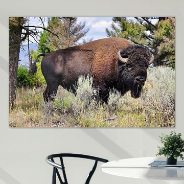 Bison, large and powerful animals of North America, most currently living in natural reserves. Do you have an interest in these creatures and want wall art of them? Our artists have made many impressive artworks of bison and have put them together in the Bison wall art collection. Buy dynamic photo prints on acrylic, or buy an illustration on canvas, poster, wallpaper and many more.