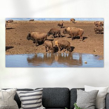 Bison, large and powerful animals of North America, most currently living in natural reserves. Do you have an interest in these creatures and want wall art of them? Our artists have made many impressive artworks of bison and have put them together in the Bison wall art collection. Buy dynamic photo prints on acrylic, or buy an illustration on canvas, poster, wallpaper and many more.
