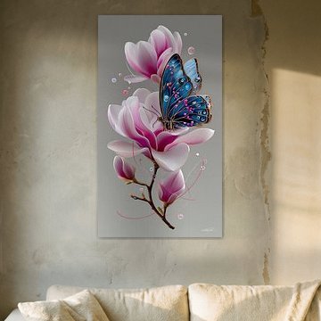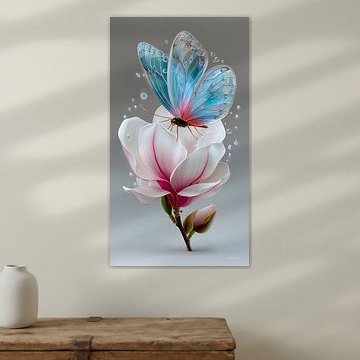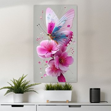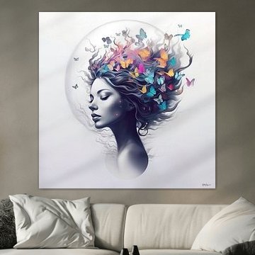With butterflies as wall art, your wall becomes colourful and cheerful. Buy your favourite butterfly photo art and paintings from our diverse wall art collection. From women with butterflies as colourful paintings, to mysterious black butterflies as photo prints. Order the butterfly art print in your desired size printed on luxury glass or as canvas print of high quality.