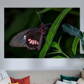 With butterflies as wall art, your wall becomes colourful and cheerful. Buy your favourite butterfly photo art and paintings from our diverse wall art collection. From women with butterflies as colourful paintings, to mysterious black butterflies as photo prints. Order the butterfly art print in your desired size printed on luxury glass or as canvas print of high quality.