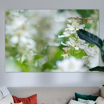With butterflies as wall art, your wall becomes colourful and cheerful. Buy your favourite butterfly photo art and paintings from our diverse wall art collection. From women with butterflies as colourful paintings, to mysterious black butterflies as photo prints. Order the butterfly art print in your desired size printed on luxury glass or as canvas print of high quality.