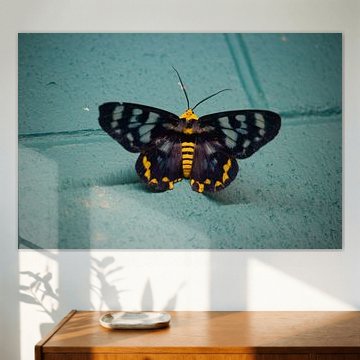 With butterflies as wall art, your wall becomes colourful and cheerful. Buy your favourite butterfly photo art and paintings from our diverse wall art collection. From women with butterflies as colourful paintings, to mysterious black butterflies as photo prints. Order the butterfly art print in your desired size printed on luxury glass or as canvas print of high quality.