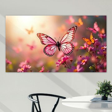 With butterflies as wall art, your wall becomes colourful and cheerful. Buy your favourite butterfly photo art and paintings from our diverse wall art collection. From women with butterflies as colourful paintings, to mysterious black butterflies as photo prints. Order the butterfly art print in your desired size printed on luxury glass or as canvas print of high quality.