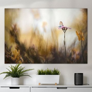 With butterflies as wall art, your wall becomes colourful and cheerful. Buy your favourite butterfly photo art and paintings from our diverse wall art collection. From women with butterflies as colourful paintings, to mysterious black butterflies as photo prints. Order the butterfly art print in your desired size printed on luxury glass or as canvas print of high quality.