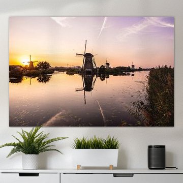 Buying a Dutch windmill as wall decoration is incredibly popular. Especially the windmills in Kinderdijk are already hanging on the wall of many people. A painting of Kinderdijk in winter or a picture of skating at Kinderdijk are typical winter pictures. Would you like to buy a photo Kinderdijk? In our collection, the windmills show off in every season. We print your favourite photo of Dutch mill as wall decoration in any size.