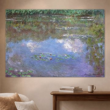 Hang Claude Monet's paintings on your own wall. In this Monet wall art collection you can buy affordable Monet paintings, or a modern Monet art print in the same impressionistic style. The fleetingness of the moment and soothing nature make a unique impression on the wall. Buy a Monet water lilies art print as wallpaper, or buy a modern Monet painting on canvas. There is a diverse range of high-quality materials, and many options for different sizes.