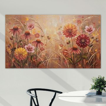 Mixing warm and cool shades creates depth without overwhelming your space. Look for artworks that layer sunny yellows or oranges alongside mint greens or aqua blues - they bring energy while staying harmonious. A good example is Abstract painting, landscape with wild flowers, which balances both palettes beautifully.