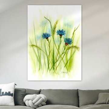 Bring the enchanting charm of the countryside into your home with our collection of cornflower artworks. These delicate, bright blue flowers, often found in grain fields, symbolize simplicity and natural beauty. Whether you choose a painting, a detailed photograph, or a vibrant collage, cornflowers add a fresh and calming atmosphere to any room. Available on canvas, posters, and ArtFrames, you can find the perfect piece to complement your interior. Discover the serenity and timeless elegance of cornflowers and bring a touch of nature into your space.