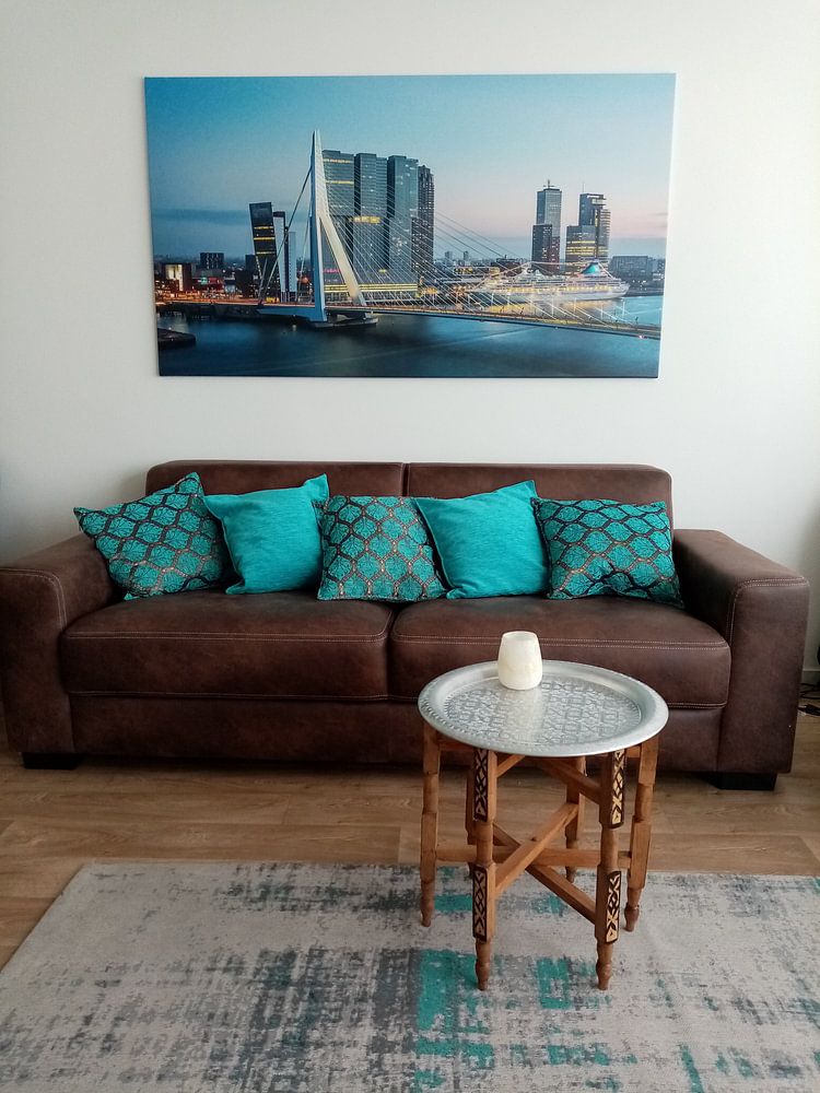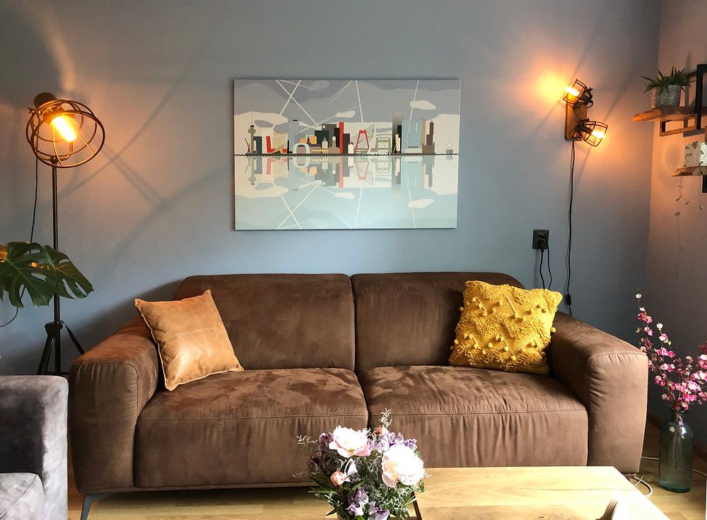 Evening cityscapes introduce natural color transitions into your room. The mauve and blue tones in Kop van Zuid pair beautifully with taupe or grey furnishings, creating a balanced palette that feels calm yet contemporary. These cooler shades work especially well in spaces with warm wood or neutral textiles.