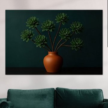 Dark green is a powerful colour, being used by royals to show their wealth, but also representing calmness and transition. Do you want to add an impactful colour to your interior with wall art? Our artists have used this colour to create their artworks and put them together in our Dark Green wall art collection, buy your favourite artwork. Buy stylistic still lifes on canvas, or buy abstract paintings on poster, wall paper, and many more.