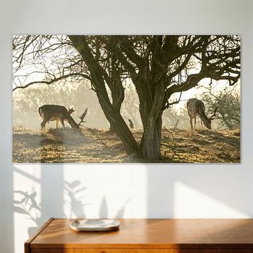 An elegant deer as wall art makes your home more rural and natural. Buy a deer art print or go for wildlife photo art on the wall. Illustrations of red deer, expressive deer paintings or hyperrealistic photo art of a deer in action. You will find it all in our deer wall art collection. Buy your favourite deer art print on the material and format of your choice.